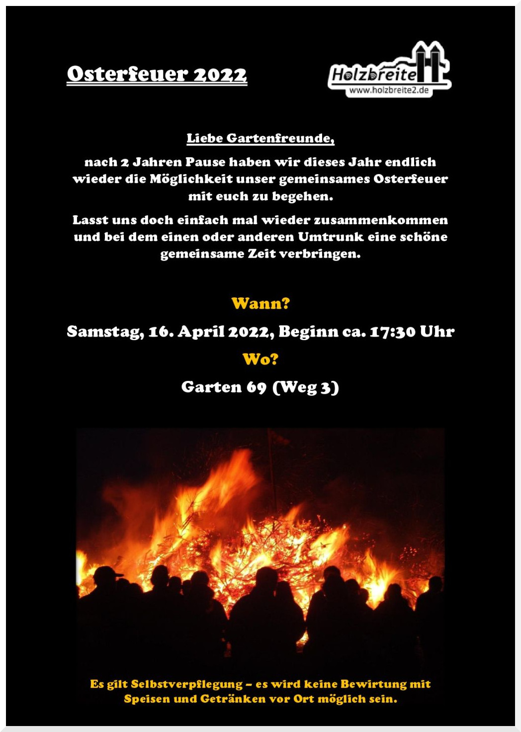 Nach 2 Jahren Corona-bedingter Pause wollen 2022 wieder ein gemeinsames Osterfeuer mit euch begehen. Lasst uns wieder einmal zusammen kommen und eine schöne Zeit verbringen.